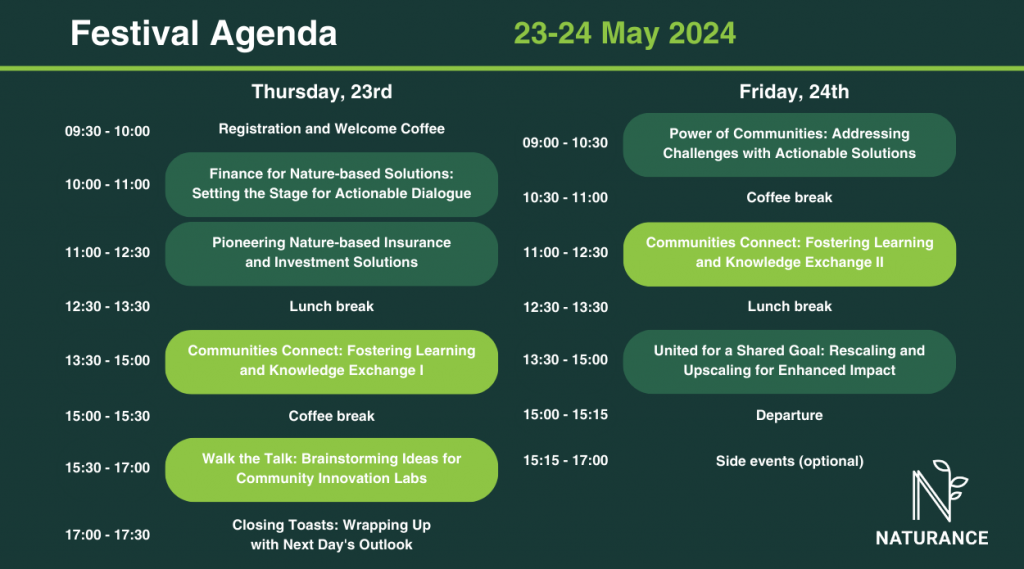 The intended audience of the festival comprised professionals, experts, policymakers, and advocates from diverse sectors, including finance, insurance, environmental science, policy analysis, and sustainability. Entrepreneurs, investors, researchers, and community leaders interested in exploring nature-based solutions and advancing innovative approaches to addressing climate change and environmental challenges were also welcomed. The festival aimed to foster collaboration, knowledge exchange, and collective action among individuals and organisations committed to driving positive change towards a more sustainable future.