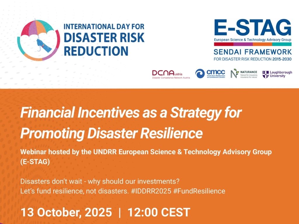 Financial incentives can play a crucial role in promoting resilience in the building sector. This webinar, co-hosted by NATURANCE and the European Scientific and Technical Advisory Group (E-STAG), established by the UNDRR Regional Office for Europe and Central Asia, will take place on the International Day for Disaster Risk Reduction. It will explore innovative approaches — from insurance mechanisms to risk-informed planning — that shift the focus from reacting to disasters to preventing them. Despite growing awareness of the urgent need to mitigate disaster risks, the economic damages caused by disasters continue to rise, while investments in disaster risk reduction (DRR) lag behind. The building sector illustrates this challenge vividly: construction and urban development often advance without integrating risk-informed standards, locking in future vulnerabilities.